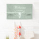 Rustique pastel sauge vert blanc rustique bull crâne de vache pays western cowboy mariage accueil bannière de bienvenue. Vintage style ferme tendance imprimé de texture en détresse. Ancien antiquité d'inspiration occidentale sauvage. Cool, design animal de ferme moderne. Customisez votre script. Copyright de l'image Marg Seregelyi Photography.