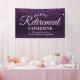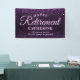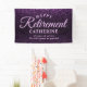 Modern Happy Retirement Nom personnalisé Bannière avec parties scintillant violette festive et brillant confetti Illustrations. Personnalisez avec votre nom et 1 ou 2 lignes de texte personnalisé. C'est le violet lilas en version noire.