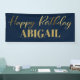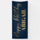 Bannière de la fête "Joyeux anniversaire" bleu marine et or customisée du nom de l'invité d'honneur.