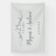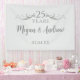 Créez une belle bannière personnalisée pour une fête d'anniversaire de mariage en ajoutant les noms du couple et la date d'anniversaire à ce panneau. Vous pouvez également choisir d'ajouter plus de texte personnalisé sous les noms. Mes volutes de faux dégradé argenté de banderoles rayonnent des deux côtés de l'écriture "25 Ans". Personnalisez ce simple panneau de bienvenue gris avec le nom du couple écrit en typographie moderne et élégante gris foncé. Ajoutez la date d'anniversaire de mariage en bas ou un texte personnalisé. Tout le texte sur le fond gris clair est modifiable. Vous pouvez également modifier le nombre pour un 60ème anniversaire, ou 10ème, ou 50ème ou tout autre anniversaire dont vous avez besoin. Ce serait une charmante bannière de fête d'anniversaire de mariage pour un mariage ou une fête d'anniversaire. Vous pourriez également ajouter "Joyeux Anniversaire", "Félic