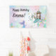 Célébrez un anniversaire magique avec cette belle sirène et cette bannière de licorne. Il y a une sirène assise sur une licorne arc-en-ciel et une autre queue de sirène au fond. Vous pouvez modifier ce message pour dire tout ce que vous voulez.