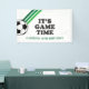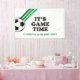 C'est l'heure du jeu ! Bandeau d'anniversaire de football avec bandes vertes et ballon de football.