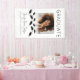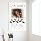 Félicitation ! C'est un moment de fierté quand vous ou un être cher traversez la scène pour obtenir un diplôme. Pour une fête de remise de diplômes, n'oubliez pas d'ajouter cette bannière de soirée élégante. Il présente un design contemporain avec une photo, Impressionnantes casquettes de graduation flottant au-dessus de la faire-part de graduation sur le devant capturera l'essence de l'occasion.