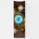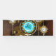 Turquoise lenses with antique watch with brass gears and golden keys on rusty, brown background. Steampunk style.