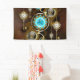Turquoise lenses with antique watch with brass gears and golden keys on rusty, brown background. Steampunk style.