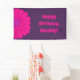 Cette bannière personnalisée présente votre message en lettres roses chaudes contre un arrière - plan violet foncé à côté d'une illustration d'une fleur marguerite violette rose et orchidée.