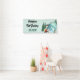 Banderole d'accueil à thème Camping - parfait pour un joyeux camper, couchette, jardin barbecue, pique-nique ou fête d'anniversaire en plein air. Cette aquarelle verte et bleue a des paysages de montagne et de forêt avec tente, feu de camp et morses. Le titre dit "Joyeux anniversaire" et vous pouvez personnaliser avec votre nom.