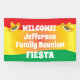 La bannière d'accueil Retrouvailles familiales sur le thème de la Fiesta mexicaine présente un arrière - plan rouge, jaune et vert avec des casquettes sombrero. Tout le texte peut être modifié pour votre réunion ou autre événement.