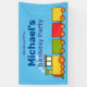 Jouet de dessin animé coloré s'entraîne sur une bannière bleue. Modèles pour ajouter votre nom.