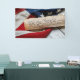 The US Constitution rolled in a scroll on a vintage American flag