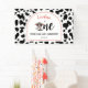 vache mignonne fêtons, fille premier anniversaire bannière corail rose avec une jolie vache caricaturale et poster de animal noir et blanc motif avec nom et texte pour customiser et coordonner avec d'autres décors dans le costume pour une célébration parfaite. Félicitations !