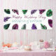 Le violet de prune tropicale, le rose des baies sauvages et la bannière du jour de mariage vert sont une façon audacieuse de féliciter. Des feuilles animés, des feuilles de palmiers et des fougères sont colorés pour un mariage à thème tropical. Les feuilles vert de l'île et violet de prune sont polyvalents pour une variété de mariages et de réceptions à thème côtier.