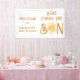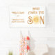 La bannière de baby shower de ce mignon garçon comporte le texte "Here Comes The Son" en typographie rétro brune avec un soleil d'aquarelle jaune souriant. Facile à personnaliser. Parce que nous créons notre oeuvre, vous ne trouverez pas cette image exacte d'autres designers. Aquarelle originale © Michele Davies.