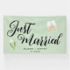 La bannière moderne de réception de mariage juste marié est une bannière de fête de mariage boho simple pour votre réception de mariage. Cette élégante conception "Just Married" fait un ajout amusant à la voiture de escapade du couple. Un équipement de mariage parfait pour la décoration mariage avec tulipes à fleurs et verres à champagne. Customisez avec le nom de la mariée et du marié et la date du mariage de la fête de mariage.