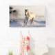 Un cheval blanc galopant dans la neige hivernale. frontiernow.com