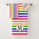 Bandes arc-en-ciel colorées et set de serviettes monogramme de bain.
