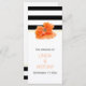 Élégante cérémonie de mariage et programme de fête. Il présente une fleur de pavot de corail magnifique et des rayures noires et blanches.
