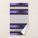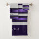 Plutôt minimaliste violet foncé, rayures géométriques violet clair et gris contre un arrière - plan blanc. Accentuez votre salle de bain avec ce bel ensemble. Customisez le nom.