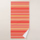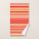 Serviette sertie dans des rayures mélangées dans les tons pastel à corail orange foncé, accentuée de corail rouge et doux jaune doré