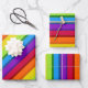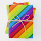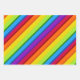 Ces feuilles de papier d'emballage comportent des bandes arc-en-ciel multicolores, une diagonale, une verticale et une horizontale.