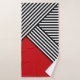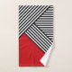 Design géométrique abstrait simple avec rayures noires et blanches et décoration triangulaire rouge