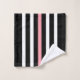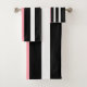 Bandes verticales en noir et blanc motif avec accents rayés roses.