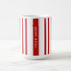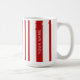 Bandes verticales rouges avec votre nom tasse personnalisée. Ensemble de trois panneaux rayés rouges avec champ de nom de texte blanc au centre de la bande sur un arrière - plan blanc.