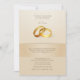 A classic invitation in soft shades of gold with pin stripes and damask patterns. Interlocking wedding bands are featured in the centre. (FP)