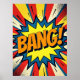 This poster is a fresh and stylish interpretation of the classic comic book sound effect. It pays homage to the bold spirit of Pop Art, but with a refined, contemporary sensibility. Instead of a chaotic explosion, this design presents a clean, powerful burst of energy, re-imagining the iconic comic panel for a modern audience. The radiant lines are sharp and precise, and the colour palette is a unique and harmonious blend of vivid red, a cool, deep blue, and a warm, punchy orange, giving it a more sophisticated feel than traditional pop art. It stands out from other designs because it successfully updates a retro style, making it perfect for contemporary spaces that value clean, bold design. This piece is for those who appreciate Pop Art and comic culture but prefer a more refined, graphic design-oriented look. It is a stylish statement that proves timeless pop art themes can be both retro and sleek.