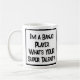 Funny slogan on a Coffee mug that says "I'm a Banjo Player. What's YOUR super talent?". Coffee Mug for a Banjo Player or someone who plays the banjo. Black and white bold text.