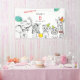 Banner for 5th birthday party with fun cute animal illustrations drawn in pencil sketch style.