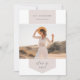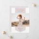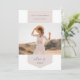 Customize this chic graduation announcement with a horizontal or landscape oriented photo overlaid on a ribbon banner in soft greyed blush pink. Add your graduate's name, school, and graduation year. Personalize the back with an additional photo and a personal message.