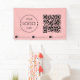 Une bannière rose imprimée personnalisée qui peut être customisée à vos dimensions préférées selon leur utilisation. Plusieurs tailles et matériel intérieur et extérieur sont également disponibles. Customisez la bannière de votre entreprise avec le logo de votre entreprise, le code QR et les icônes de médias sociaux personnalisés et créez votre propre bannière de table pour vos foires artisanales et événements de fournisseurs. Idéal pour les salons, les boutiques pop up, les expositions, les événements d'affaires, le shopping et tous types d'entreprises. Fixez-les sur les murs, les tables des vendeurs, etc. Sélectionnez la taille et l'option qui vous convient le mieux !