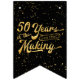 Qu'il s'agisse d'un anniversaire de mariage en or ou d'un anniversaire de 50 ans pour un homme ou une femme, célébrez-les et saluez les invités avec cette bannière photo personnalisée pour célébrer leur occasion spéciale. La typographie en or jaune indiquant "50 ans dans la fabrication" vous permet d'ajouter leur année "établie" dans le cadre du design et personnalisée avec leur(s) nom(s). Thème noir et or.
