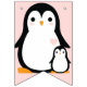 Bannière À Fanions Baby shower Pingouin mignon fille rose