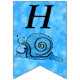Cette bannière en forme de drapeau Happy Birthday est un mélange de tons bleu aqua avec un mignon escargot à motif bleu qui sourit et a des yeux blancs ronds. Customisez l'année d'anniversaire avec les modèles.