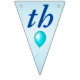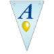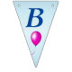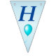 Cette bannière en forme de drapeau Joyeux anniversaire est bleu clair avec des lettres bleu foncé avec des ballons festifs lumineux dans plusieurs couleurs de rouge, jaune, bleu, rose et vert. Customisez l'année d'anniversaire avec les modèles.