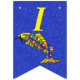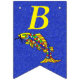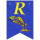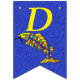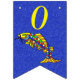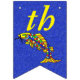 Cette bannière en forme de drapeau Happy Birthday a un poisson abstrait festif et coloré dans le jaune, le bleu et l'orange sur un arrière - plan bleu profond et vibrant avec de minuscules taches brillantes. Customisez l'année d'anniversaire et le texte avec les modèles.