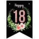 Chic Modern Happy 18th Birthday Bunting Flags avec une Parties scintillant d'or Rose "18" sur un élégant arrière - plan noir agrémenté d'une couronne de fleurs.