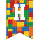 Bâtiment coloré bloc jouet joyeux bannière de bunting d'anniversaire. Une grande bannière de bunting pour la fête d'anniversaire d'un garçon où les blocs de construction de jouets de construction imbriqués sont le thème. Vous pouvez changer le message d'anniversaire heureux que vous voulez.