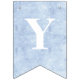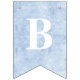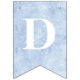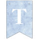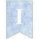 Ce bunting d'anniversaire a un arrière - plan enneigé derrière les lettres qui épellent "Joyeux anniversaire." A chaque extrémité se trouve une princesse Fairytale portant une robe bleue.
