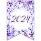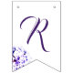 Le design présente les mots "Just Married !" dans un élégant script violet. Chaque lettre est accompagnée d'un bouquet de violet. L'année du mariage est indiquée sur le drapeau entre les mots. Conçu pour coordonner avec la "Suite Mariage catholique violette élégante".