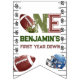 Éclairer votre anniversaire de football avec ce joli coup d'anniversaire heureux! Avec la boule d'aquarelle, le casque et la typographie mignonne une première année en bas, chaque drapeau a une lettre épelant HEUREUX ANNIVERSAIRE, le drapeau moyen a une photo qui peut être personnalisée. Idéal pour un premier anniversaire pour un garçon ou une fille. Trouvez des articles correspondants entièrement personnalisables dans ma boutique.