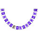 Banderole robuste en violet, avec le texte "Joyeux anniversaire". Ajoutez également une photo de la fille d'anniversaire, ou du garçon, à l'un des drapeaux en utilisant le modèle. Les premières et dernières images de drapeau sont un tas de ballons. Le lettrage alterne avec le violet foncé et clair. Pour en savoir plus sur les buntings, consultez la description du produit.