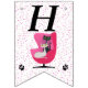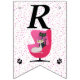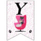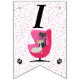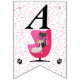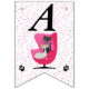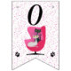Cette bannière en forme de drapeau, Happy Birthday, est blanche avec des pois roses et un chat noir et blanc assis dans une chaise rose vif du milieu du siècle avec deux empreintes de pattes de chat. Customisez le Joyeux texte d'anniversaire et l'année d'anniversaire avec les modèles.