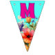 Célébrez Maman avec cette décoration unique de bannières de bunting. Des fleurs sauvages décorent chaque drapeau avec des lettres qui disent "aime maman" en lettres rose vif. Les autres couleurs sont le bleu aqua, le jaune et les pastels pour les fleurs. Vous pouvez également choisir les drapeaux en forme de queue d'épave, mais le design convient le mieux aux triangles. Utilisez pour son anniversaire ou la fête des mères, ou pour célébrer un accomplissement.