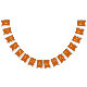 Un simple bandeau de bottes pour un mariage orange brûlé, avec les noms de la mariée et du marié, avec des casquettes jaunes dorés sur un arrière - plan couleur orange brûlé.