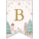 This pastel Nutcracker ballet birthday bunting flag sets the tone for your girl winter wonderland theme birthday celebration. The ODILE Collection has a soft pink background with Nutcracker ballet faves from the Sugar Plum Fairy, the Nutcracker in pastel pink, a rocking horse toy, Christmas tree, wrapped gifts, ballet point shoes, pink poinsettias, and soft mint green winter greenery. Serif font in gold spells out HAPPY BIRTHDAY.