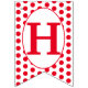 Pois rouges BONJOUR D'ANNIVERSAIRE Drapeaux avec pois rouges dans l'arrière - plan et chaque lettre encadrée dans un ovale sur chaque drapeau. Il s'agit de drapeaux de lapin rouge girly qui décoreront pour la fête d'anniversaire et l'"invité d'honneur". Prévoyez une fête à retenir. Grandes lettres en rouge, faciles à lire. Ces drapeaux de bottes accueilleront vos invités ou décoreront sur la table-gâteau ou cadeau.