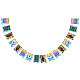 Arc en ciel coloré et drapeaux de Bunting vert foncé décoré avec le signe du Zodiac des Pisces dans une parties scintillant blanche et or. Vous n'avez besoin d'écrire le nom et le numéro d'anniversaire qu'une fois pour le préparer. Ajoutez 5 images différentes sur vos drapeaux.